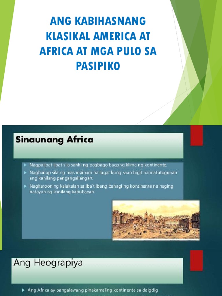 Magandang araw mga Ka TokKumusta kaPag-usapan natin ang klasikal na kabihasnan sa Africa America at OceaniaTara i-stalk na natin. Save Save Ang Kabihasnang Klasikal America at Africa at Mga For Later. May mga kabihasnang klasikal na bumangon sa Africa America at Pacific.