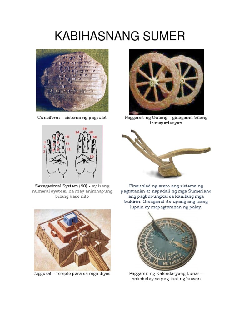 Masasabing sedentaryo at agrikultural ang pamumuhay ng tao dito batay sa mga nahukay na ebidensya. PAGHAHABI Isa sa mahalagang kontribusyon ng Indus ang teknolohiya ng paghabi na ginagamitan nila ng bulak na may sari- saring kulay. Guest11927060 Ang kabihasnang Sumer ay may malaking kontribusyon sa kabihasnang pandaigdig.